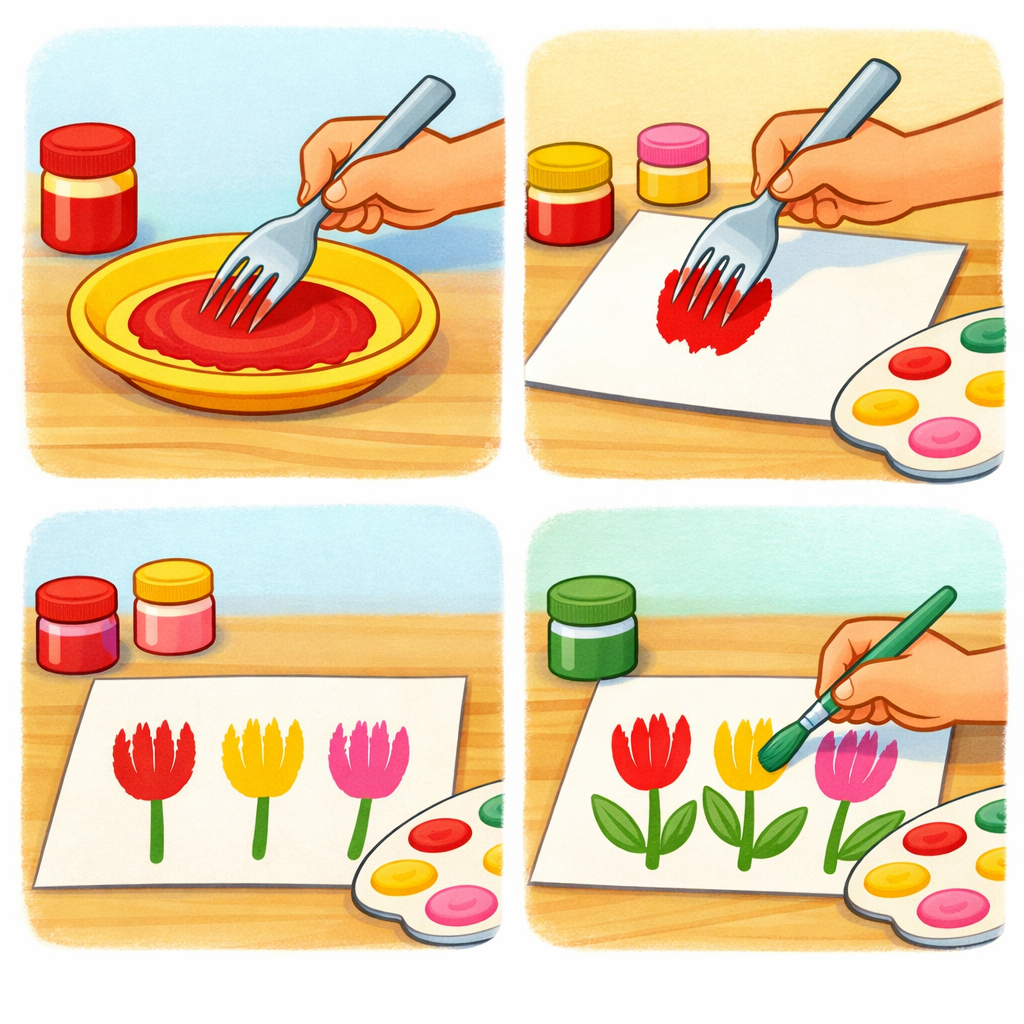 Bastelanleitung: Tulpenbild mit Gabeldruck