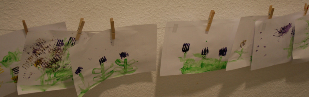 Die Kinder können mehrere Farben ausprobieren und ganze Tulpenwiesen entstehen lassen.